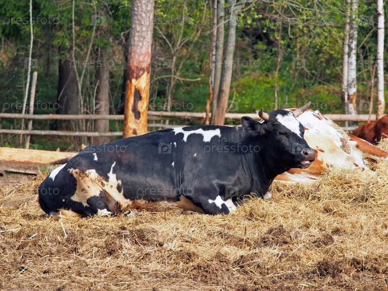 Черная корова голштинской породы. Монастырская ферма (о. Валаам, Валаамский архипелаг)