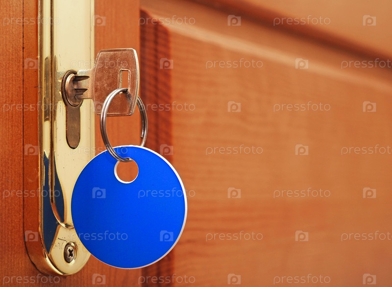 Ключ с пустой биркой в замочной скважине