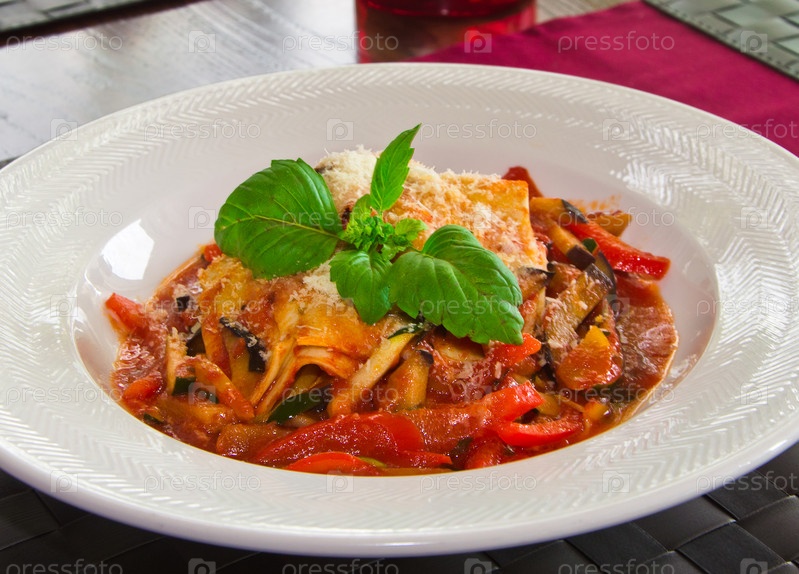 Лазанья на тарелке