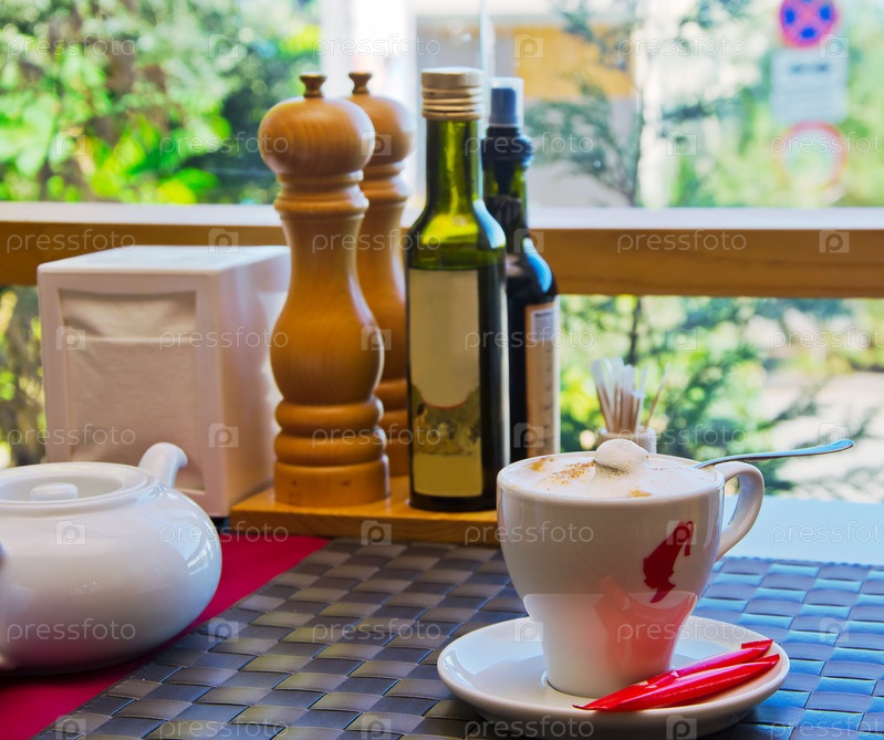 Утренний капучино в кафе
