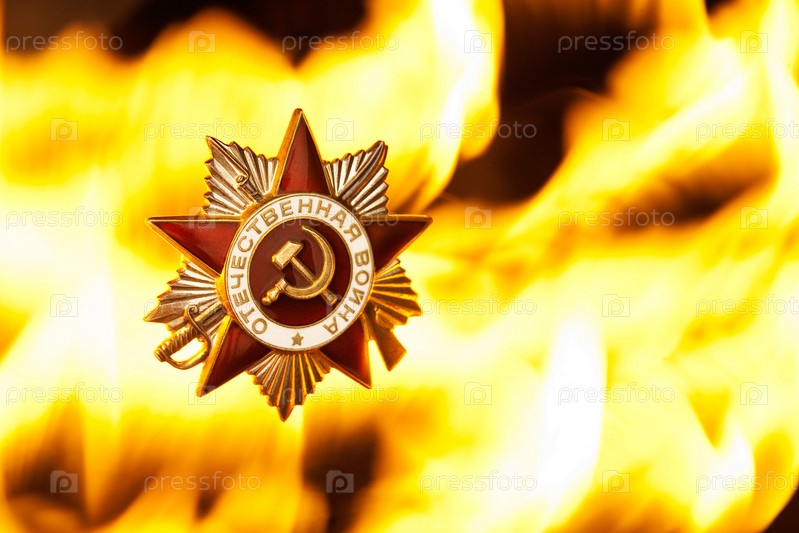 Орден Отечественная Война на фоне огня