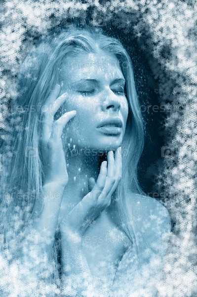 Красивая девушка, посыпанная белым снегом