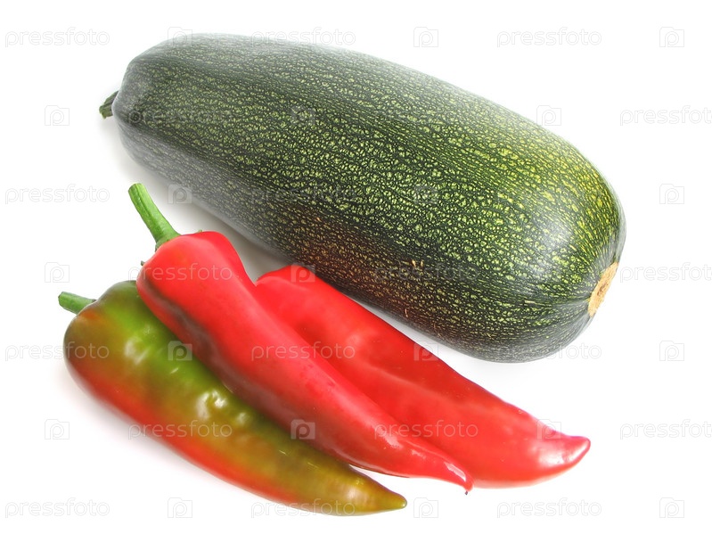 Кабачок и красный перец, изолированные на белом