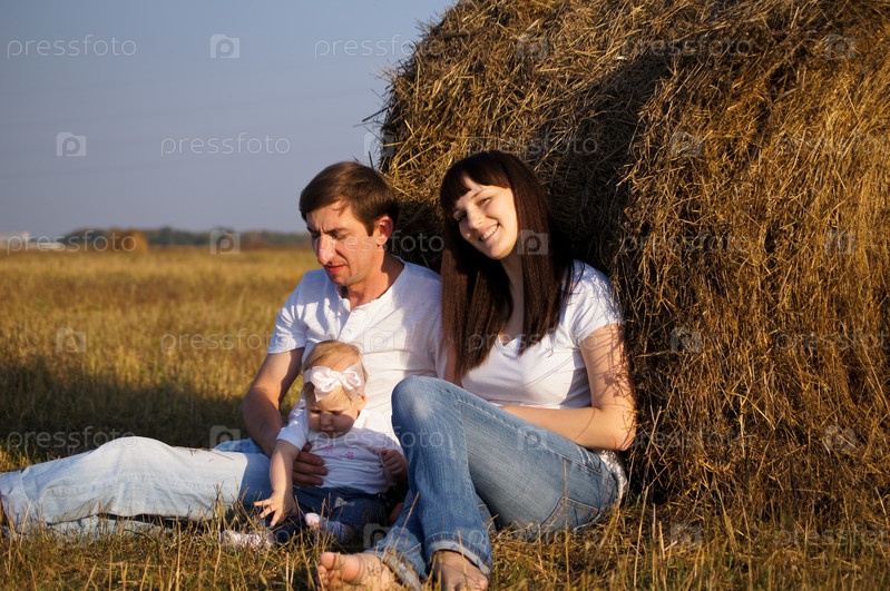 Молодая счастливая семья на прогулке