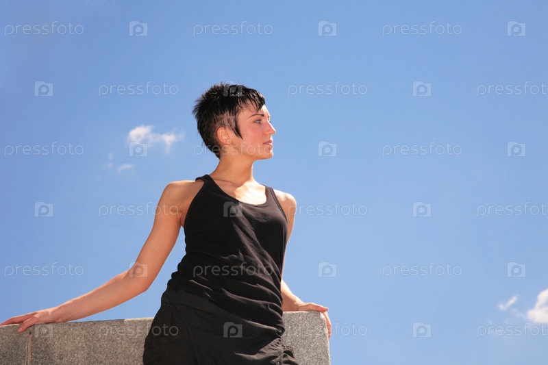 Красивая брюнетка на фоне неба