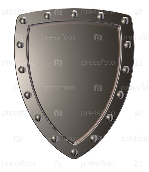 Пустой металлический щит на белом фоне - 3d иллюстрация