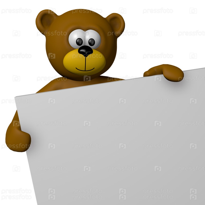 Медведь и пустой баннер - 3d иллюстрация