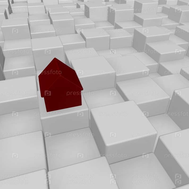 Модель дома в абстрактном пространстве - 3d иллюстрация