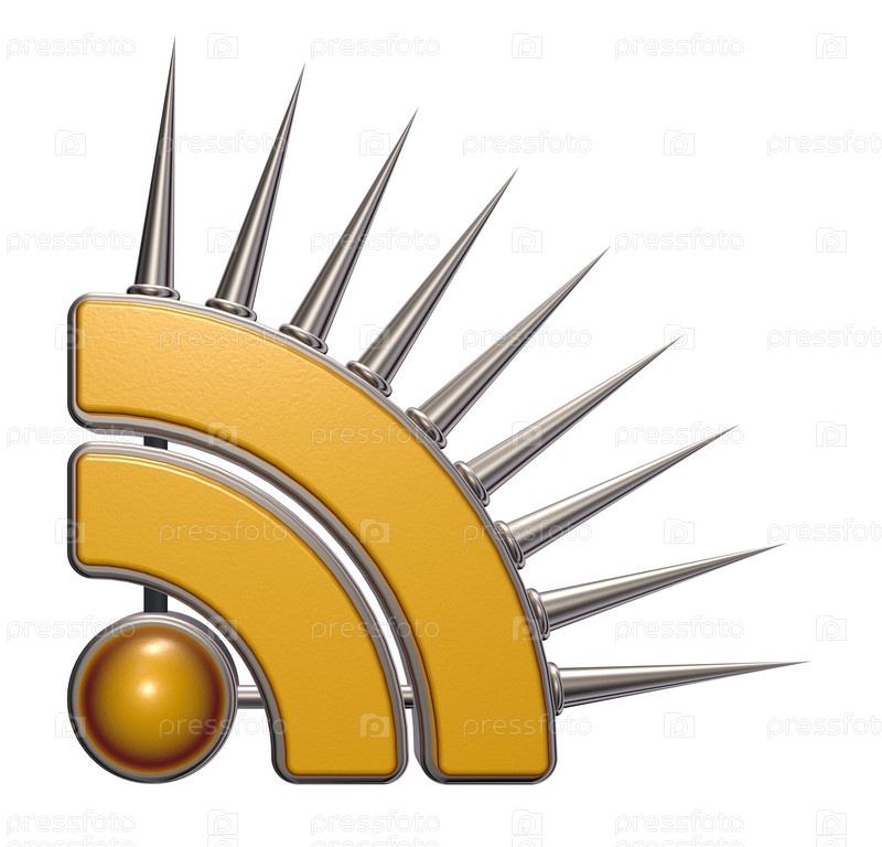 Символ RSS с шипами на белом фоне - 3d иллюстрация