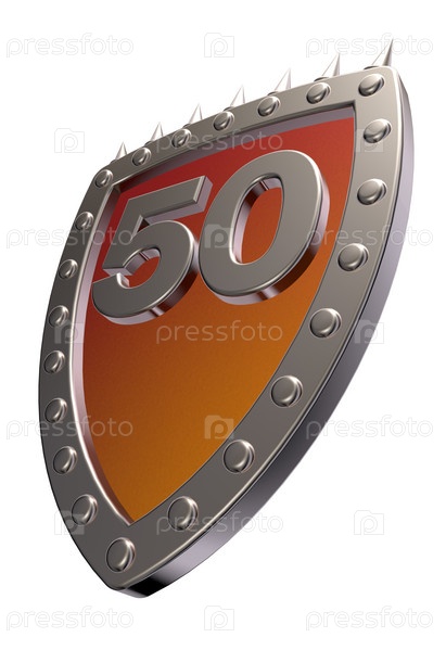 Щит с цифрой-50 на белом фоне - 3d иллюстрация