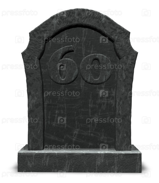 Надгробие с цифрой шестьдесят на белом фоне - 3d иллюстрация