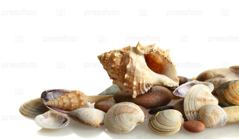 Прекрасные ракушки на белом фоне