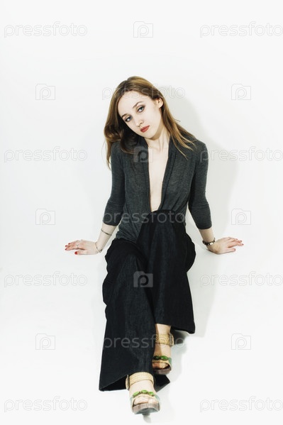 Красивая девушка в черном платье на белом фоне
