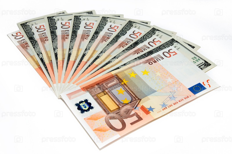 Несколько банкнот - американский доллар и евро