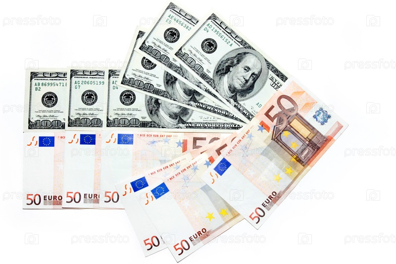 Несколько банкнот - американский доллар и евро