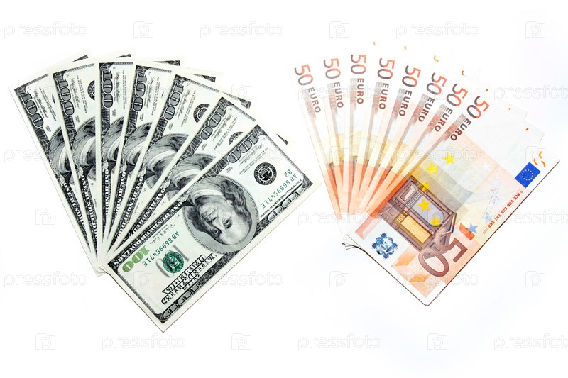Несколько банкнот - американский доллар и евро