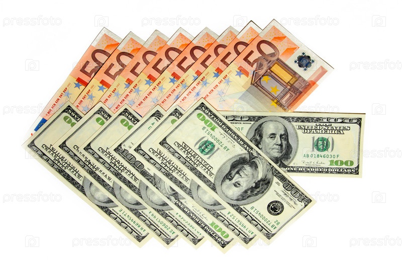 Несколько банкнот - американский доллар и евро