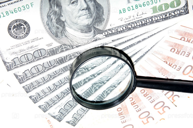 Несколько банкнот - американский доллар и евро