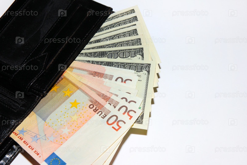 Несколько банкнот - американский доллар и евро