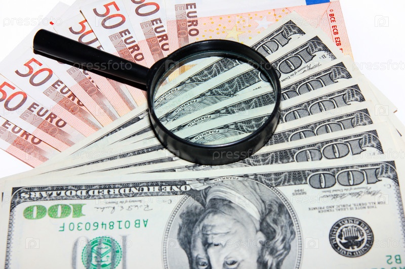 Несколько банкнот - американский доллар и евро