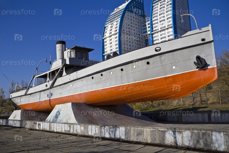 Пожарный паровой катер "Гаситель", участник Сталинградской битвы на набережной Волгограда