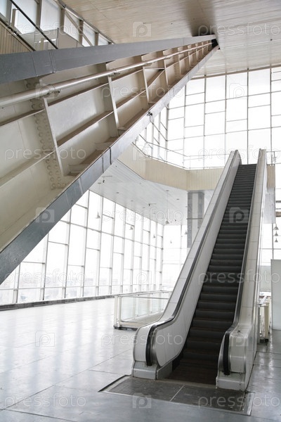 Стеклянный зал с эскалатором