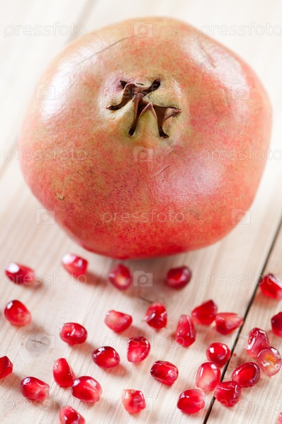 Гранат и зерна на деревянных досках