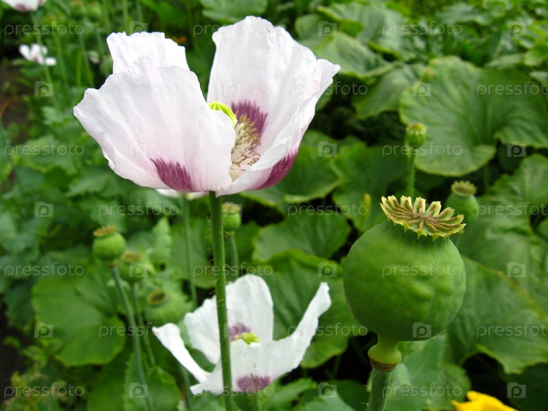 Красивый цветок мака и плод