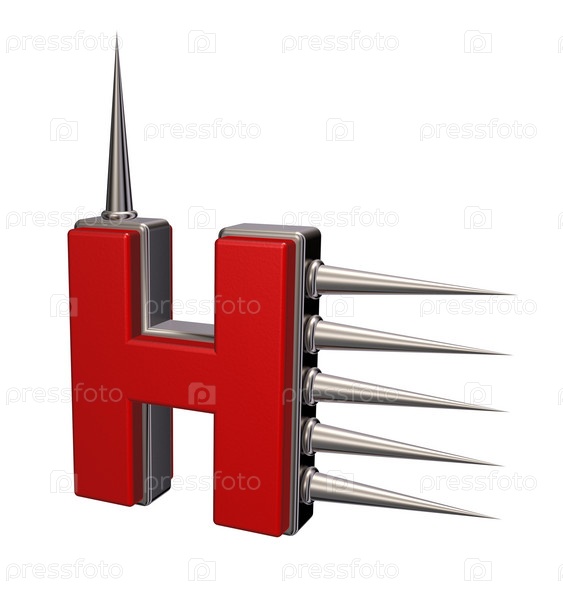 Буква Н с металлическими шипами на белом фоне - 3d иллюстрация