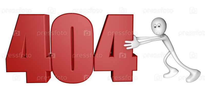Белый парень толкает цифру 404 - 3d иллюстрация
