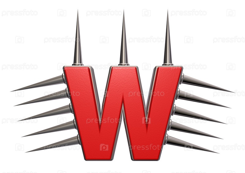 Буква W с металлическими шипами на белом фоне - 3d иллюстрация