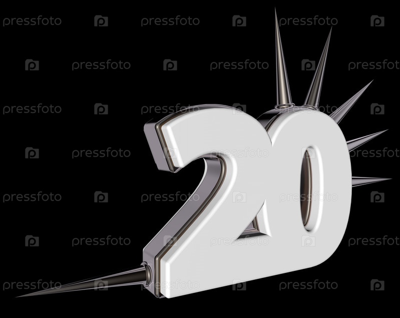 Цифра 20 на черном фоне - 3D иллюстрация