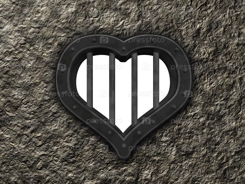 Тюремное окно в форме сердца - 3d иллюстрация
