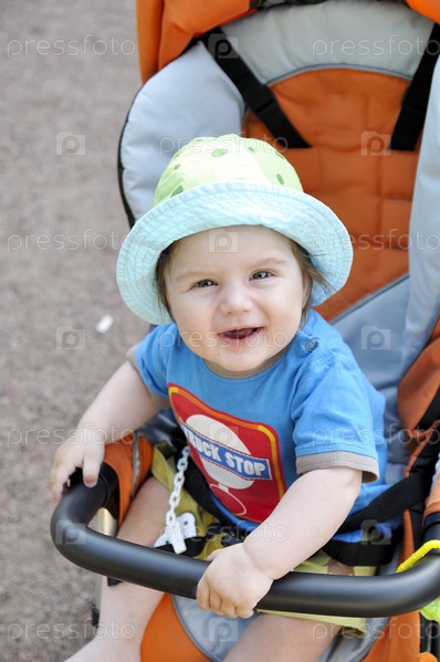 Счастливый ребенок в коляске