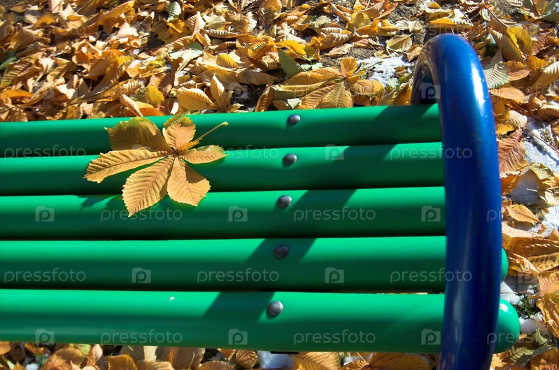Зеленая скамейка ближайший снимок в осеннем парке
