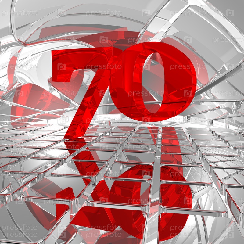 Красное число семьдесят на хромированной плитке. 3D иллюстрация