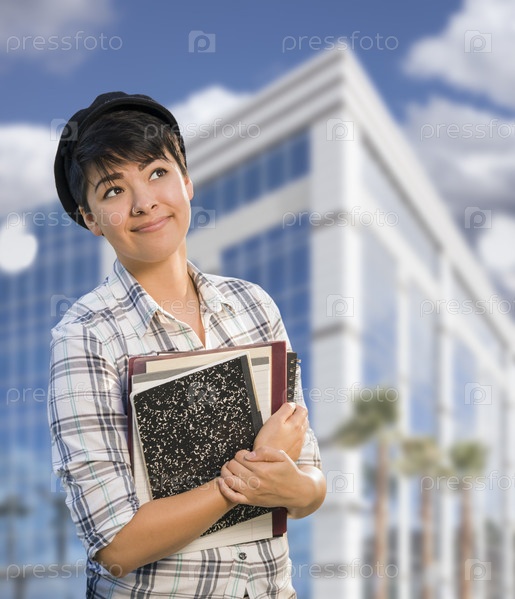 Студентка с книгами перед зданием