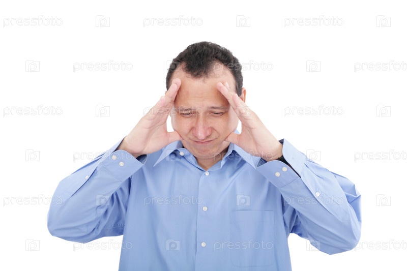 Деловой человек с головной болью, изолировано на белом