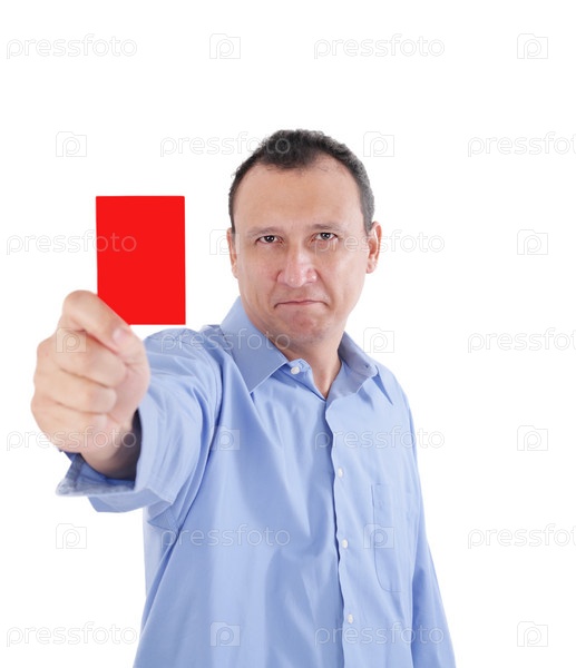 Молодой бизнесмен показывает красную карточку