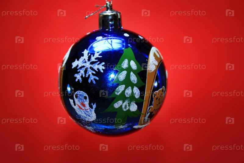 Рождественскшарик для украшения елки на красном фоне