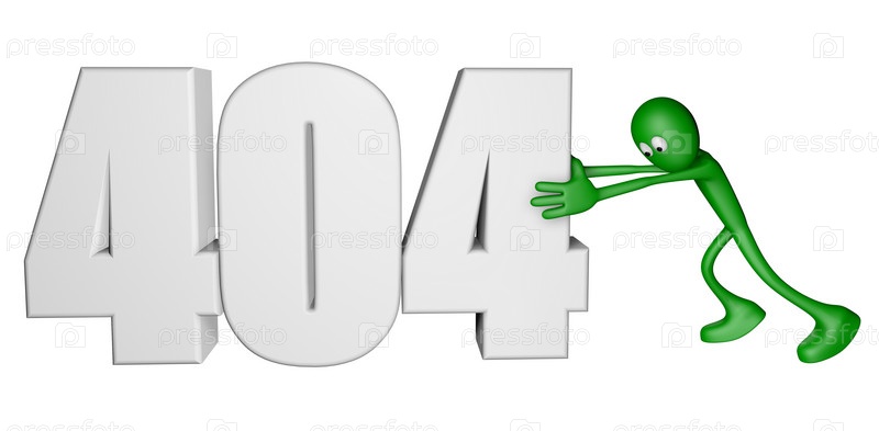 Персонаж толкает цифру 404 на белом фоне - 3d иллюстрация