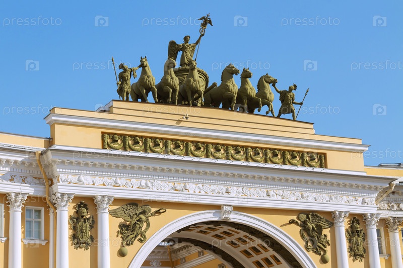 Бронзовая колесница на арке здания Главного штаба в Санкт-Петербурге
