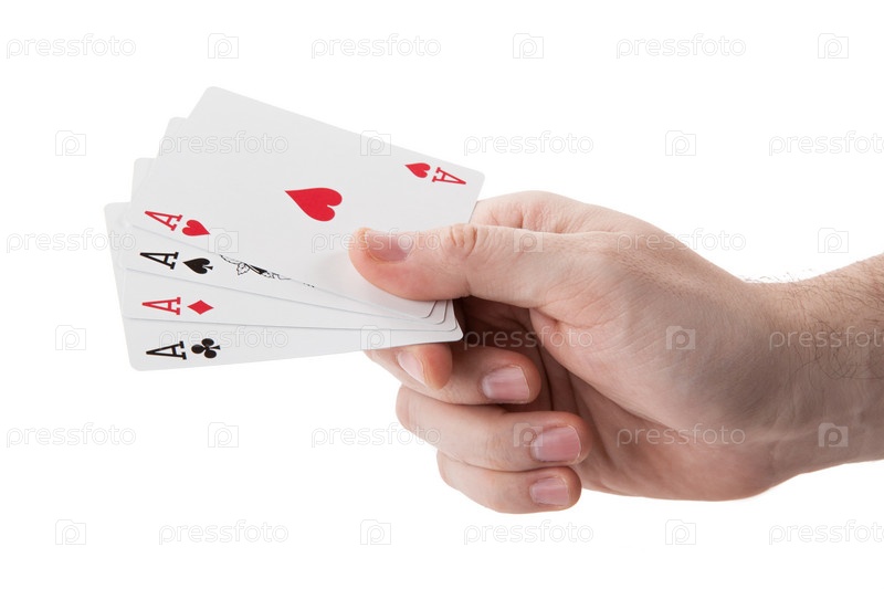 Тузы в руке на белом фоне