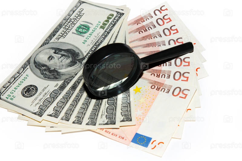 Несколько банкнот - американский доллар и евро