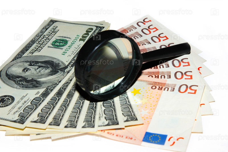 Несколько банкнот - американский доллар и евро