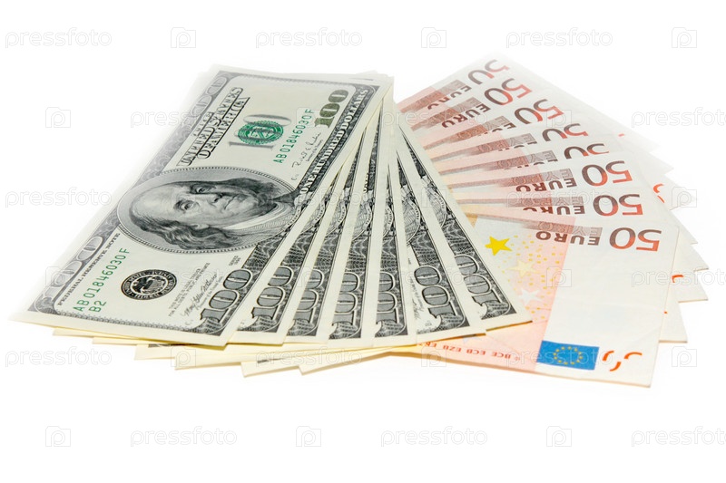 Несколько банкнот - американский доллар и евро