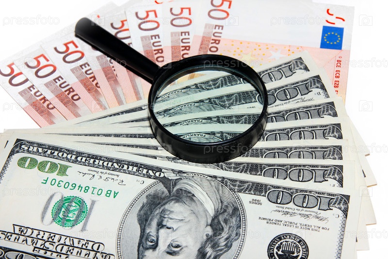 Несколько банкнот - американский доллар и евро