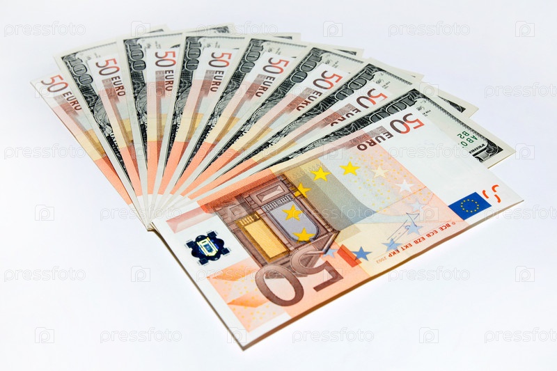 Несколько банкнот - американский доллар и евро