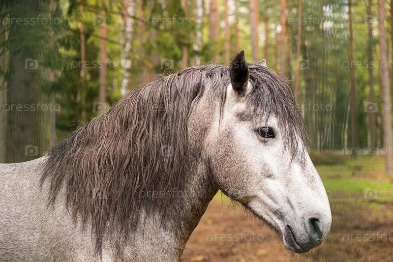 Серый конь с длинной гривой