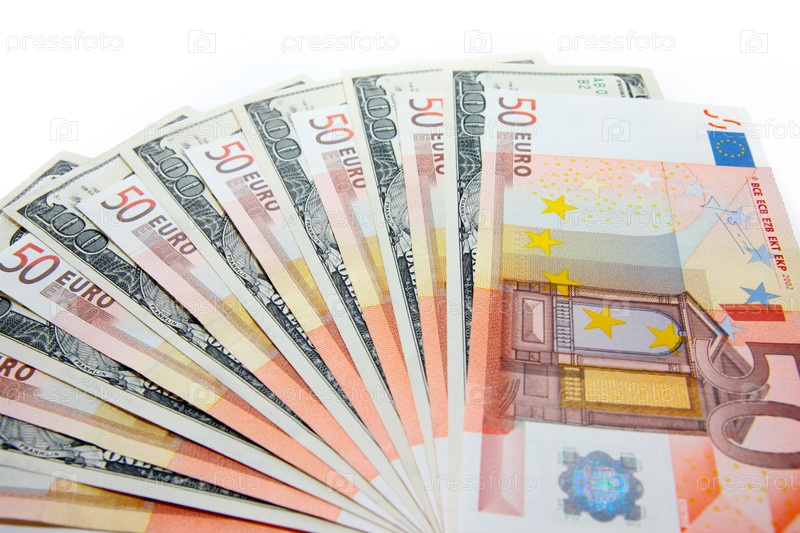 Несколько банкнот - американский доллар и евро
